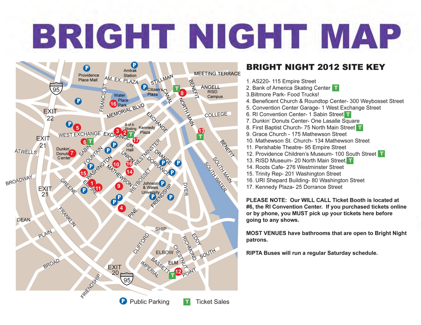Tickets to Bright Night are available online at the website (listed below). Tickets are $15 each through December 30. On the day of the event tickets are $20 each ($15 for children and seniors) Tickets will be available on the day of the event at the RI Convention Center, the Providence Children’s Museum, the RISD Museum of Art, the Bank of America Skating Center, and the First Baptist Church.